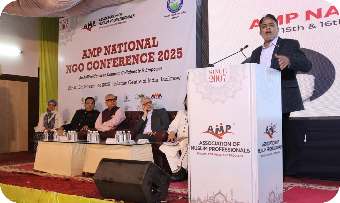 Social leaders are the face and strength of any community. Their organizations (NGOs) play a transformative role in shaping an equitable society — lifting people from despair into hope, dignity, and empowerment. AMP is now organising the National NGO Conference 2025 on 15th & 16th November, in Lucknow, bringing together Leaders, Intellectuals, Policymakers, and grassroots NGOs to chart a collective path for Community Development and Nation-Building. Over 1000+ NGOs and social organizations from across India are expected to participate, making this one of the largest gatherings for collaborative social action.