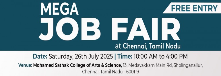 Location: Mohamed Sathak College of Arts & Science, 13, Medavakkam Main Rd, Sholinganallur, Chennai, Tamil Nadu – 600119.
