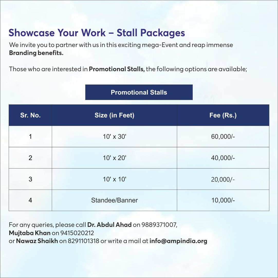 We invite you to partner with us in this exciting mega-Event and reap immense Those who are interested in Promotional Stalls, the following options are available.